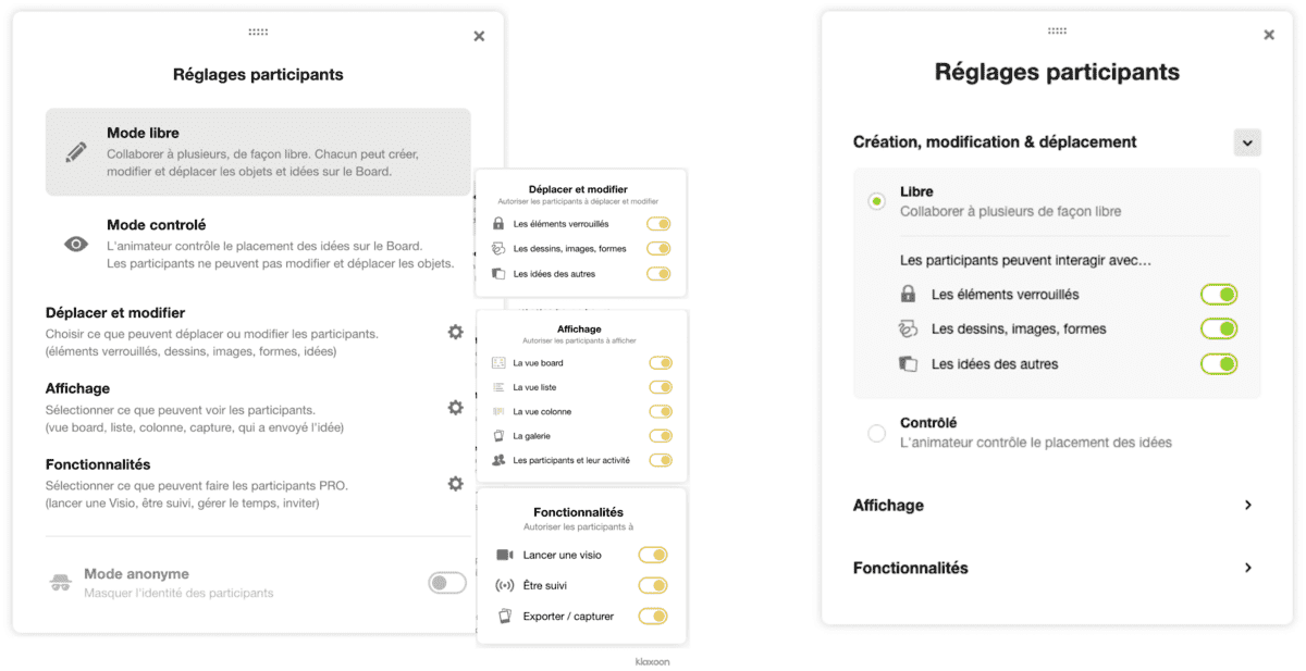 L'interface des réglages participants évolue sur le Board pour améliorer l'expérience utilisateur et la compréhension du choix de mode du Board.