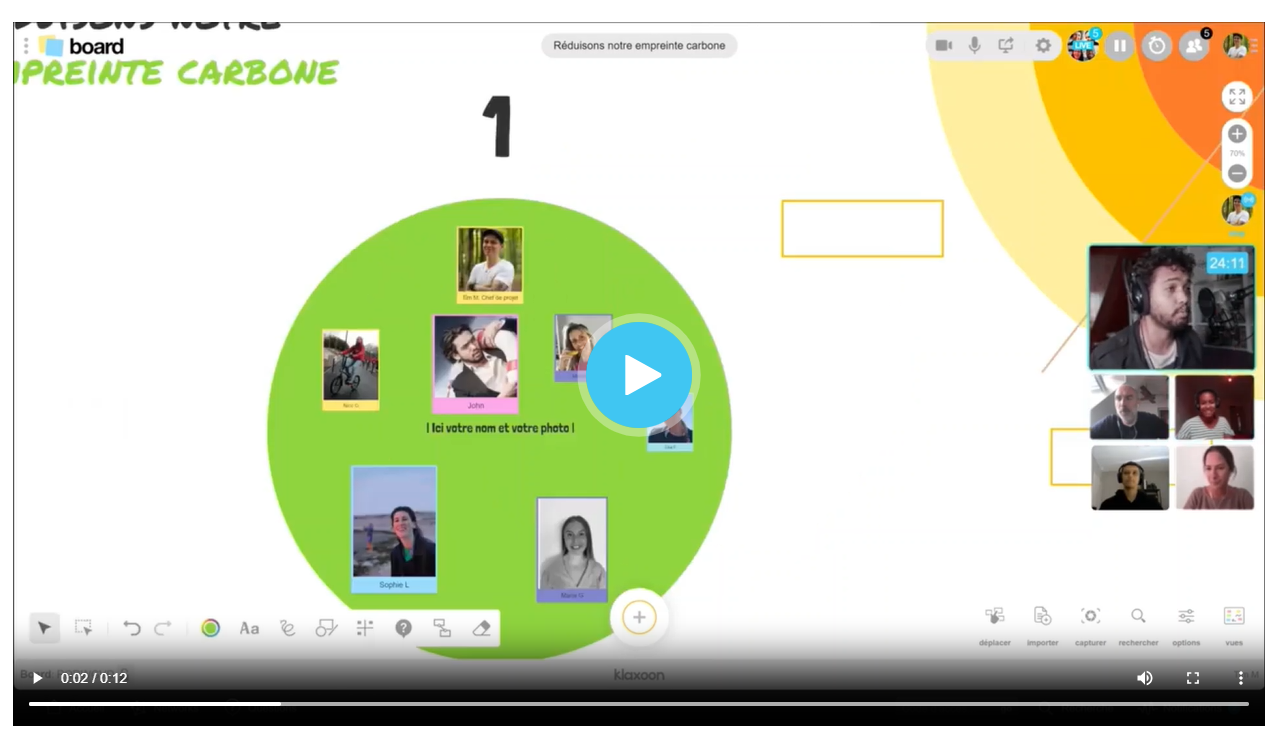 Avec la hausse des usages en distanciel, les participants ont besoin de pouvoir lancer la vidéo de leur côté. Il est donc désormais possible pour les participants de lire les vidéos hébergées sur Klaxoon sur Session en toute autonomie, comme c'était déjà le cas pour les vidéos hébergées sur des services tiers tels que Youtube ou Vimeo.