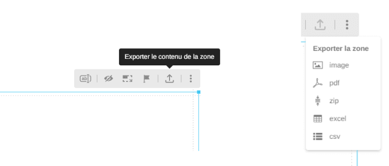 Ouvrez le menu “Exporter le contenu de la zone” en cliquant sur le symbole de la flèche de téléchargement