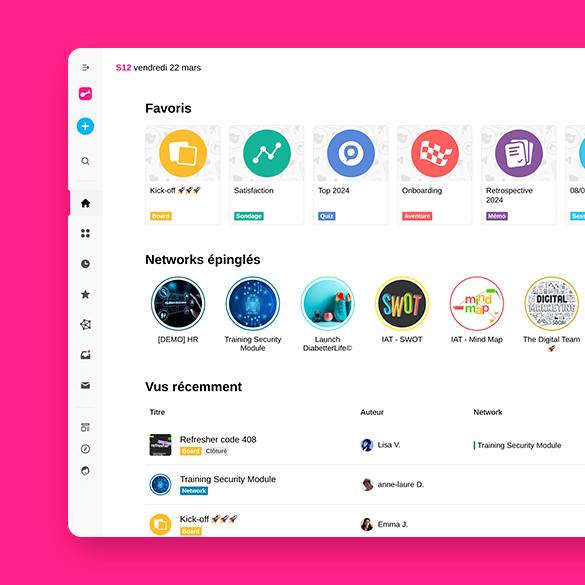 Networks épinglés : vous permet de classer par ordre de priorité les Networks auxquels vous accédez le plus souvent afin de pouvoir naviguer sans effort vers vos préférés d'un simple clic.