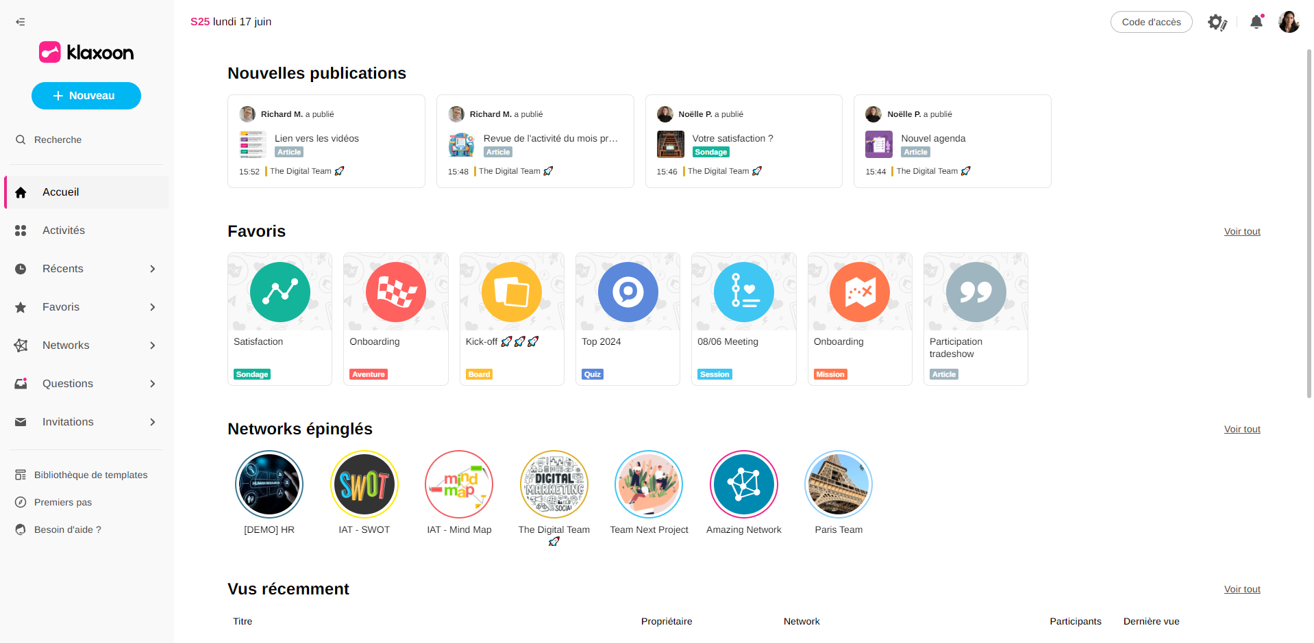 Ne manquez aucune publication des Networks dont vous êtes membre ! Le bloc "Nouvelles publications" a été ajouté à votre page d'accueil pour vous informer des activités Klaxoon qui viennent d'être publiées.