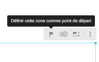 La première zone créée sur le Board sera automatiquement rendue zone de départ. Il est possible d'en changer facilement en cliquant sur les pointillés, puis sur l'icône de drapeau.
