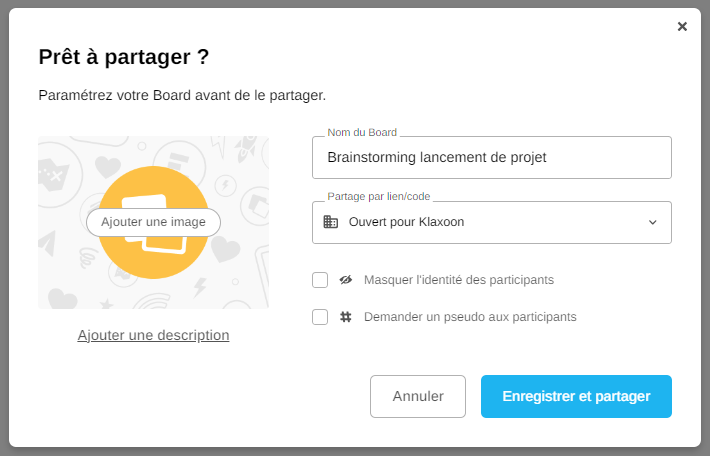 Le mode de partage des activités Klaxoon évolue pour devenir encore plus intuitif et facile à utiliser, offrant une meilleure gestion des accès. Vous pouvez désormais partager et gérer vos activités en toute simplicité, favorisant ainsi une collaboration plus efficace dès le départ.