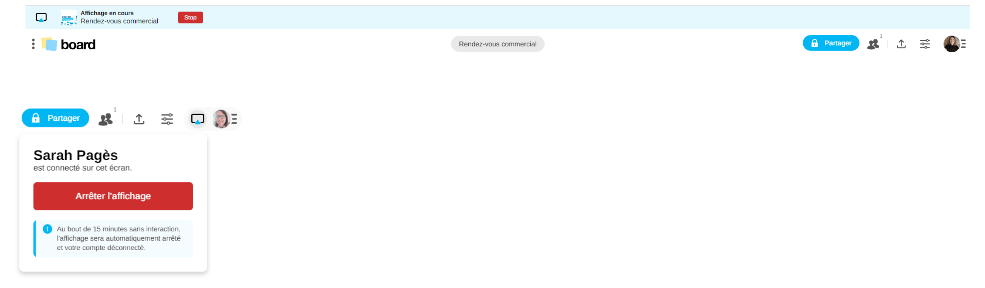 Lorsque vous partagez une activité sur un écran interactif, vous pouvez arrêter le partage à tout moment.
