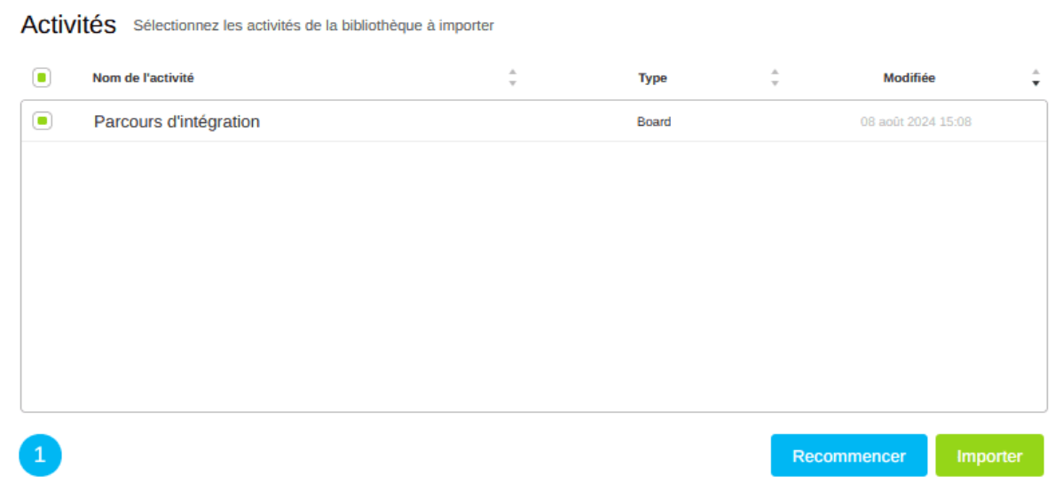 3 - Cochez l'activité que vous souhaitez importer