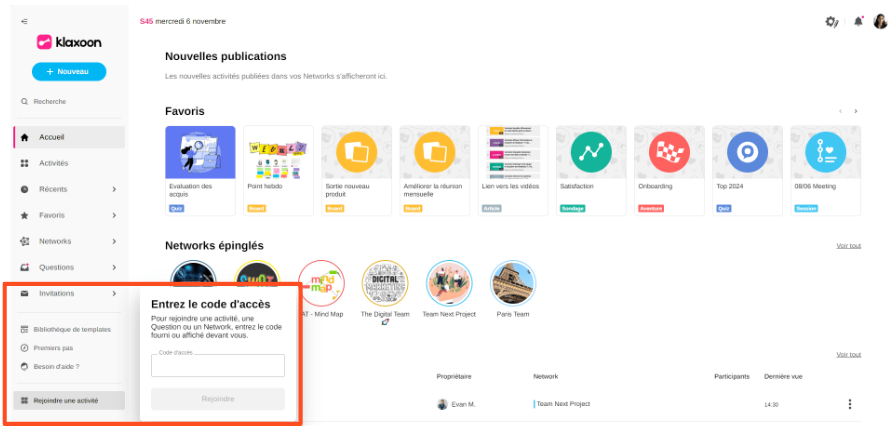 Vous souhaitez participer à une activité grâce à un code d'accès qui vous a été transmis, découvrez la marche à suivre dans cet article.