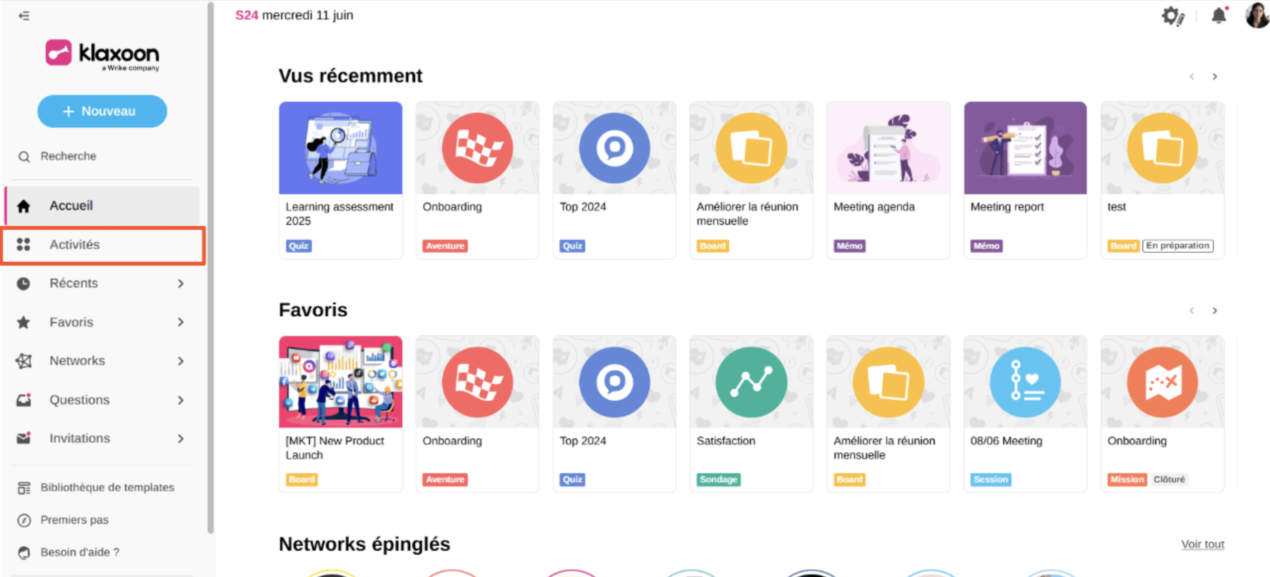 Depuis l'accueil, sélectionnez le menu "Activités"