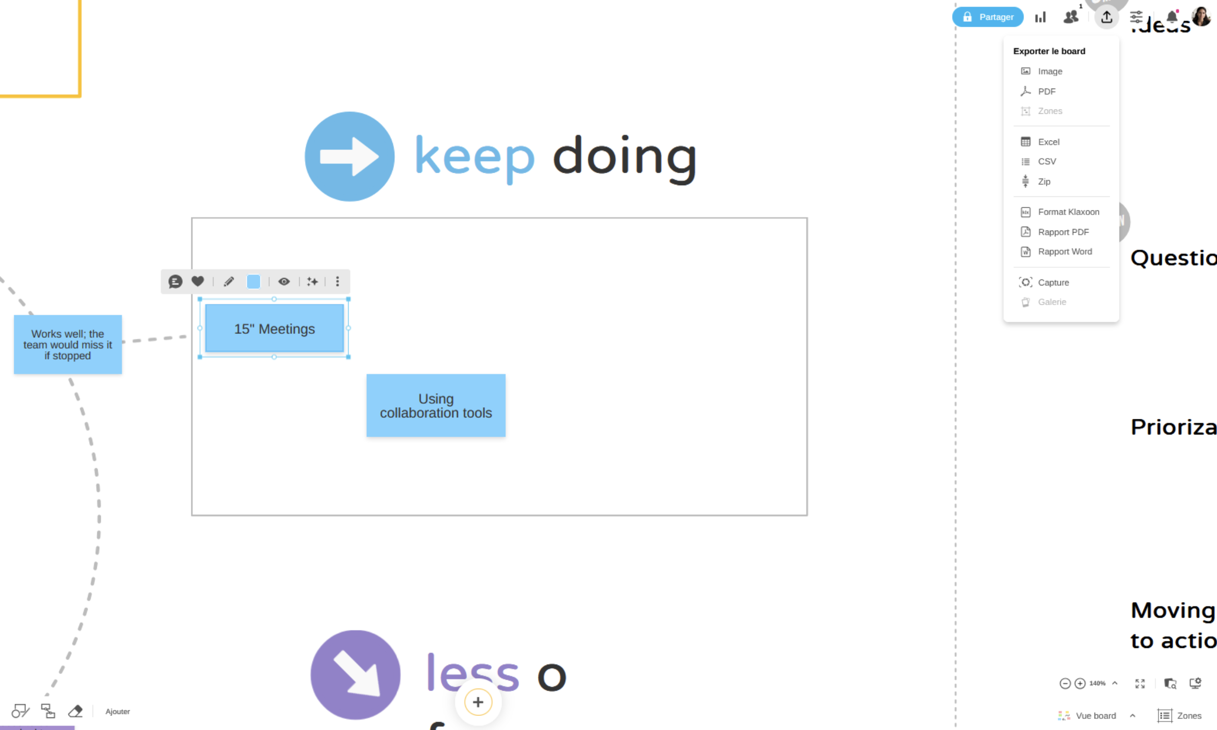 Format Klaxoon : télécharger le Board et son contenu au format .KLX, afin de pouvoir l'importer dans un autre compte (ce type de fichier ne peut être ouvert que dans Klaxoon)