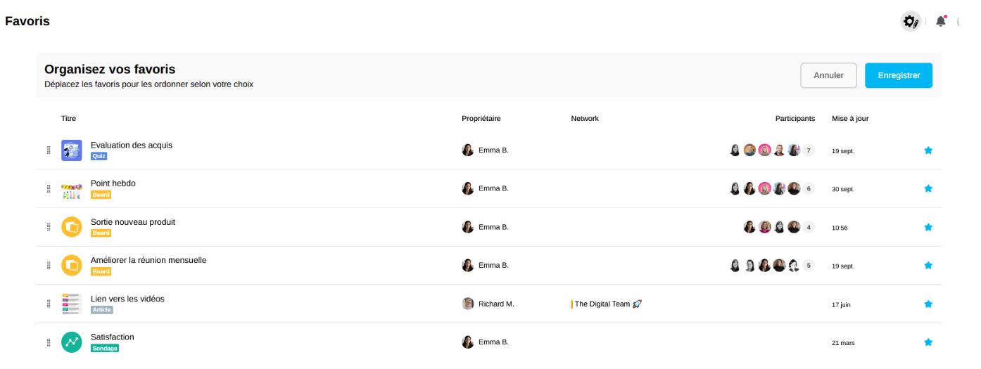 Grâce à l'étoile sur le côté de l'activité, vous allez pouvoir "Retirer l'activité de vos favoris".