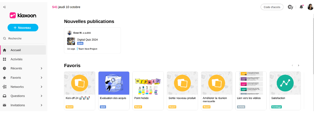 Depuis ma page d'accueil, je retrouve bien mon activité récemment ajoutée en "Favoris"