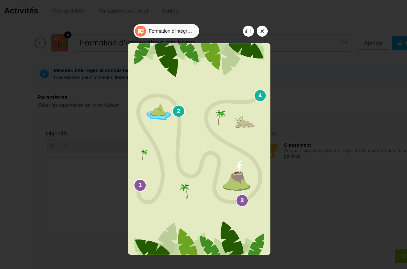 L'aperçu vous permet de prévisualiser une activité avant de la lancer. Vous pouvez voir ce qui apparaîtra sur l'écran des participants à l'activité.