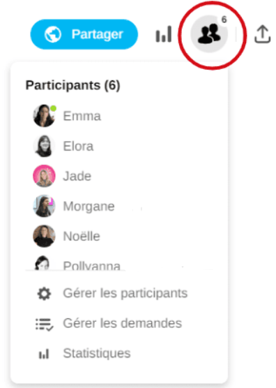 Depuis votre activité, cliquez sur l’icône des participants dans le coin supérieur droit.