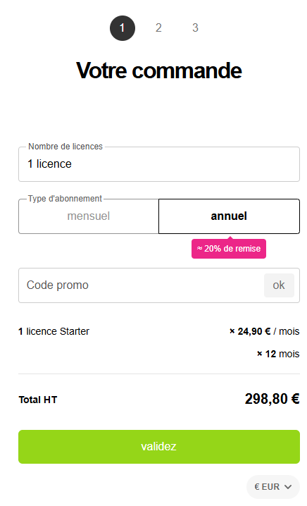 Rendez-vous sur la page des tarifs pour valider votre offre Starter.