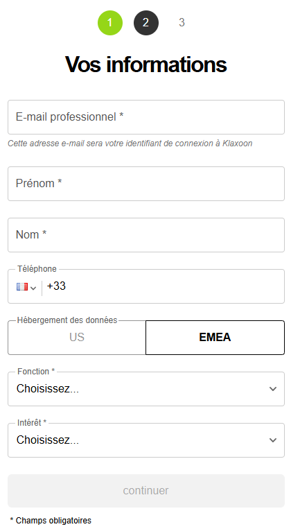 Adresse email, nom, prénom... mais également la zone de stockage de vos données puis valider.