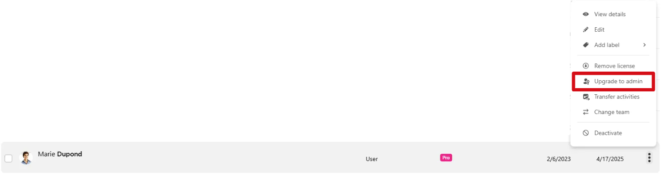 Pour garantir une meilleure gestion de votre équipe, vous pouvez attribuer le statut d'administrateur à un autre membre.