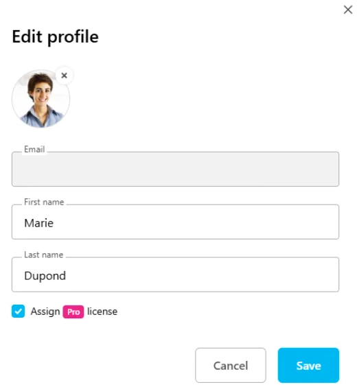 Dans la fenêtre d'édition, décochez l'option "Attribuer une licence Pro".