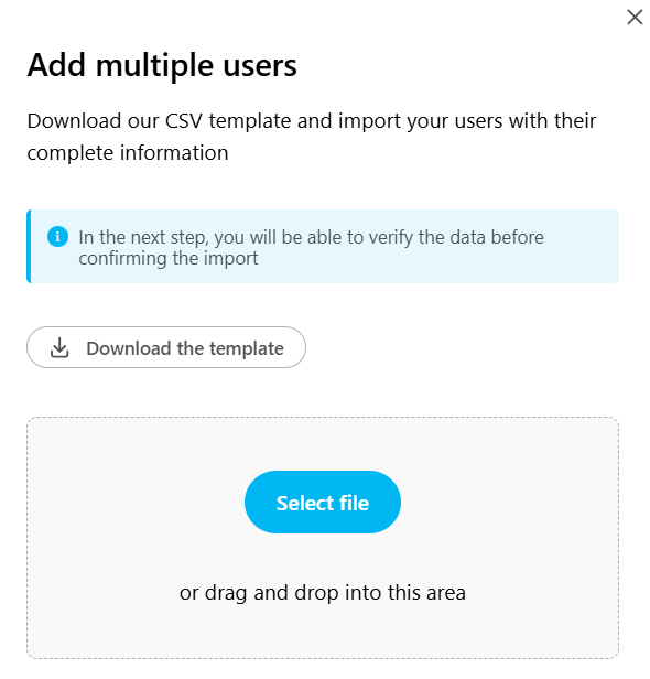 En tant qu’administrateur, vous avez la possibilité d’ajouter de nouveaux utilisateurs à votre équipe en fonction du nombre de licences ouvertes dont vous disposez grâce à un import CSV.