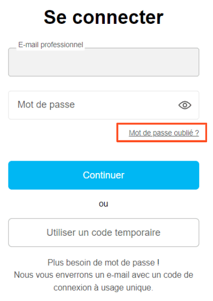 Une fois votre adresse email renseignée, cliquez sur "Mot de passe oublié"