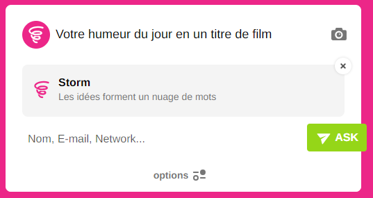 Créez une question , ici une question de type "Storm", sur le Board via l'icône "Solliciter votre équipe".