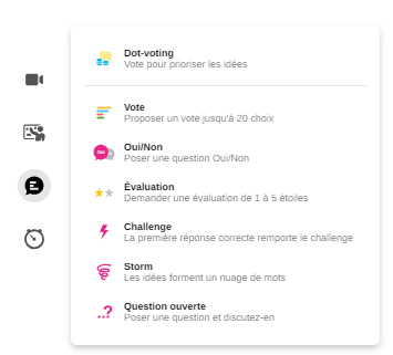 Lancez votre question nuage de mots depuis le bouton "Activités" de votre écran d'animation.