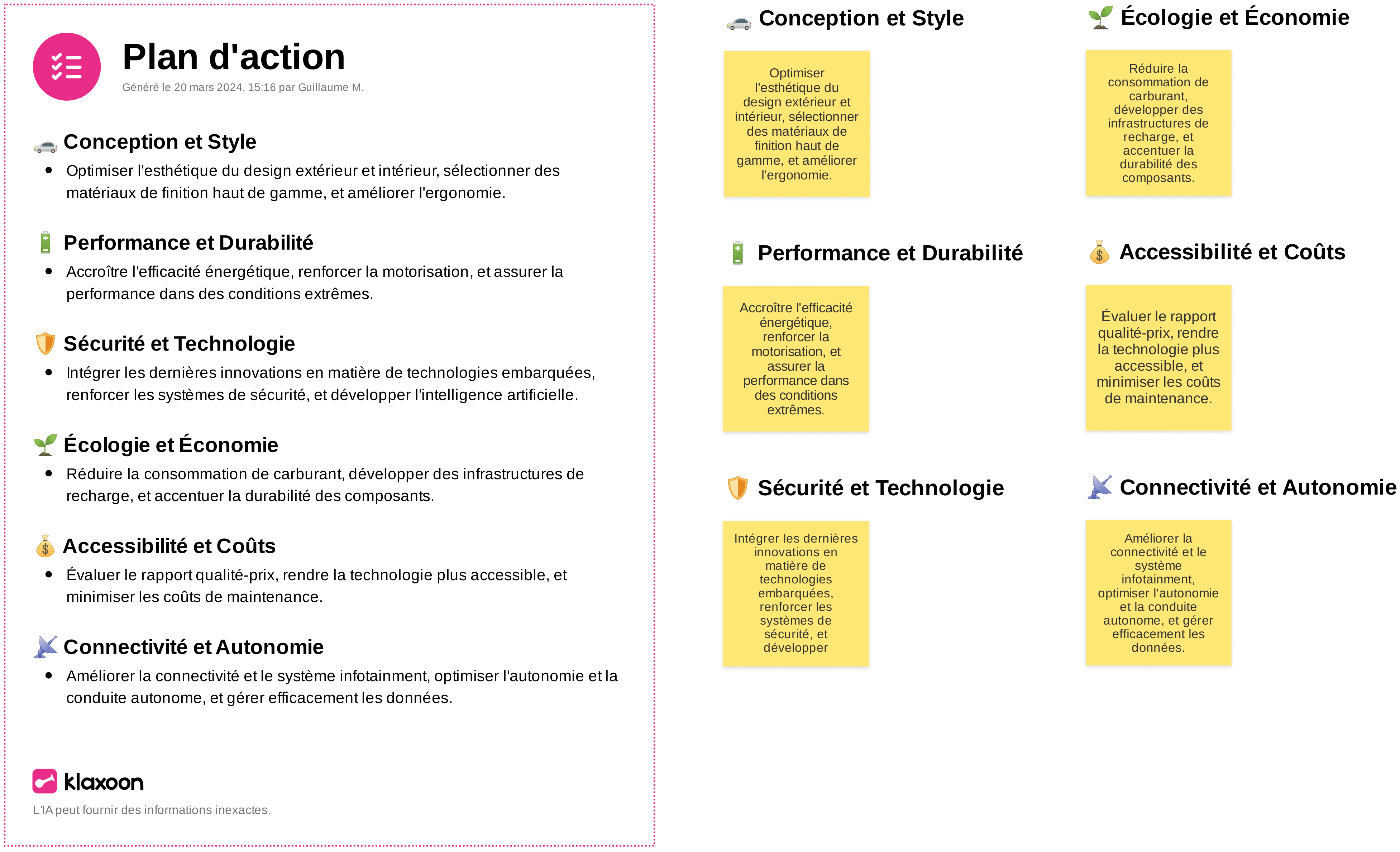 L'objet final généré par l'IA est un format "fiche" ainsi qu'un "duplicata" au format idée Board pour pouvoir rapidement exploiter ces actions directement dans Board.