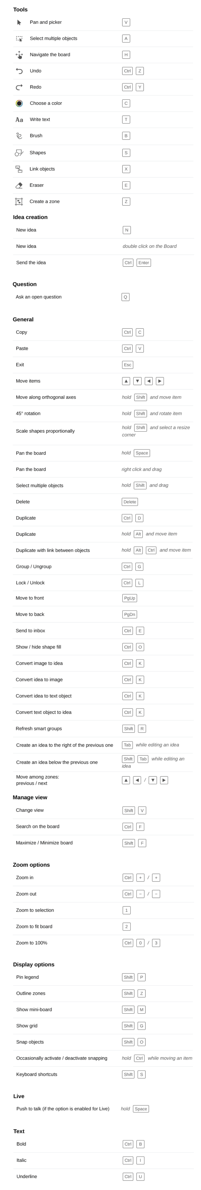 Cet article contient la liste complète des raccourcis clavier sur Board.