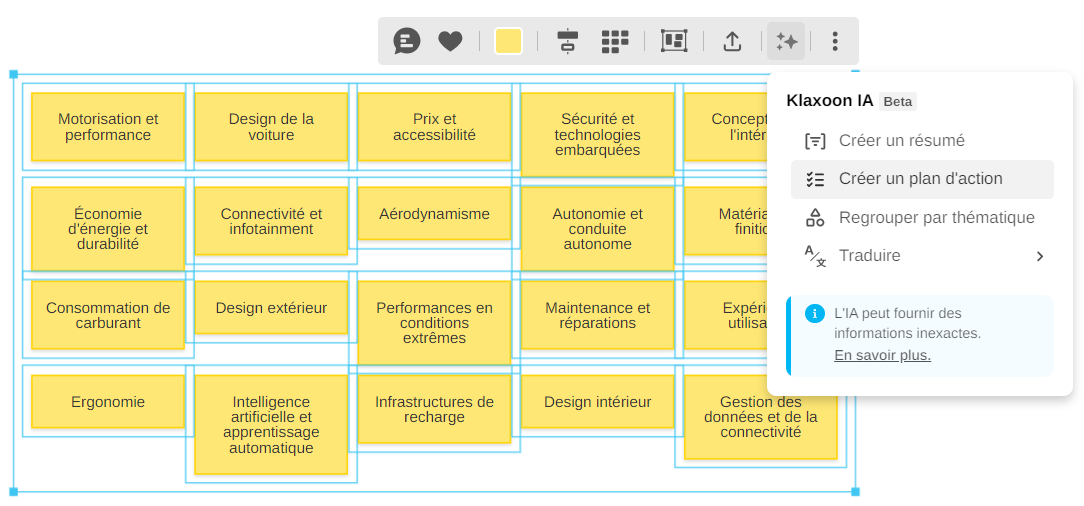 Depuis votre Board, sélectionner des idées, puis cliquer sur l'icône IA