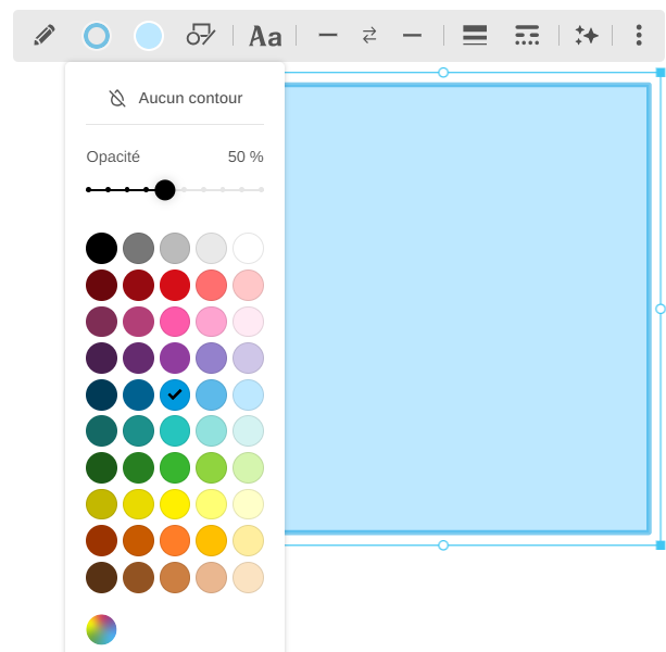 Une fois l'objet sélectionné, un menu contextuel apparaît. Cliquez sur l'icône représentant la couleur de contour et/ou de remplissage.