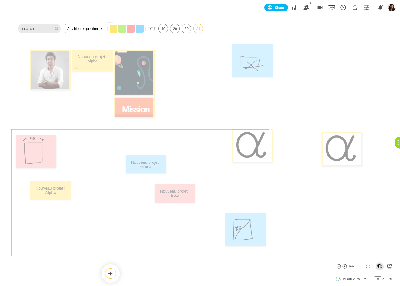 La fonctionnalité Rechercher permet de réaliser une recherche d’idée sur votre Board avec différents filtres :