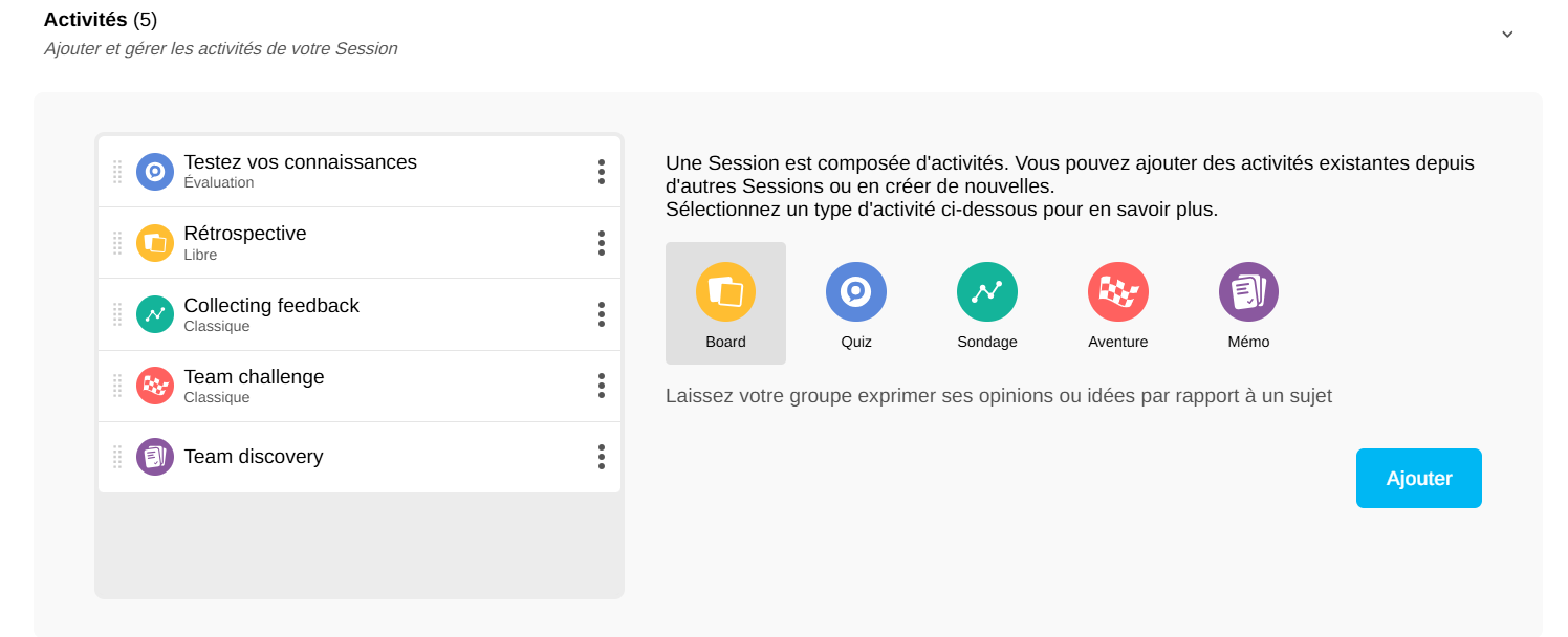⚠️ Si vous ne réajoutez pas le Board, une activité vide apparaîtra dans la Session à la place du Board initial.