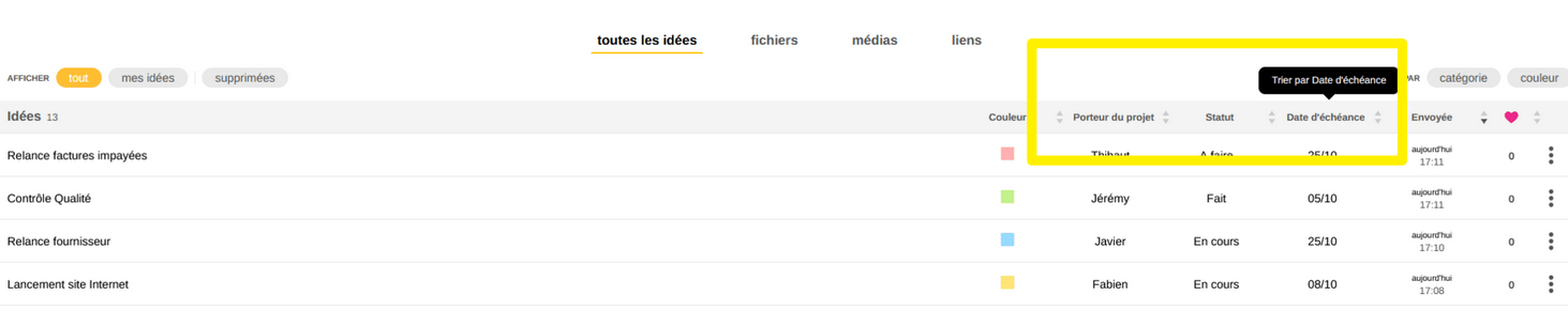 Une fois votre Board crée et lancé, vous allez pouvoir utiliser la vue Liste pour visualiser rapidement et trier les informations envoyées.