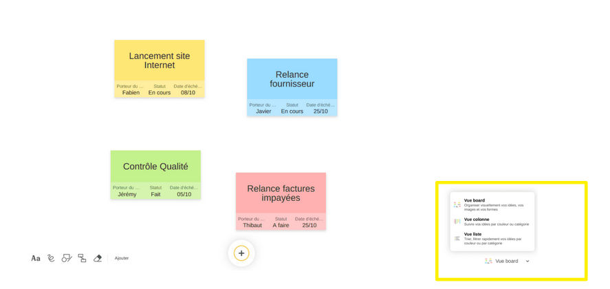 Cliquez sur le bouton "Vue Board" en bas à droite de votre écran, puis choisissez "Vue liste"