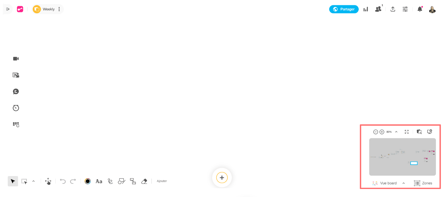 En mode présentateur, lorsque vous partagez votre Board avec d'autres participants, vous pouvez également utiliser le zoom pour mettre en évidence de manière dynamique des éléments spécifiques.