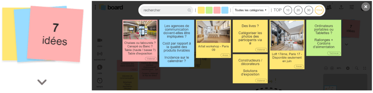 Board : Les idées sont placées manuellement sur le tableau blanc infini