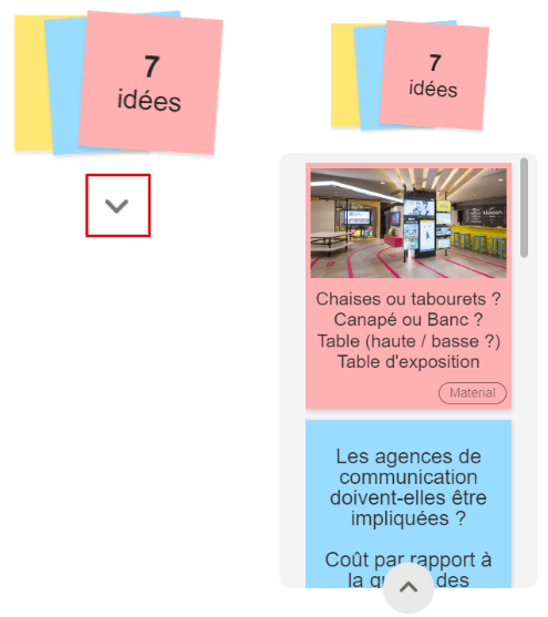Colonne : Les idées sont organisées selon leur catégorie, qui peut être modifiée par un glisser-déposer