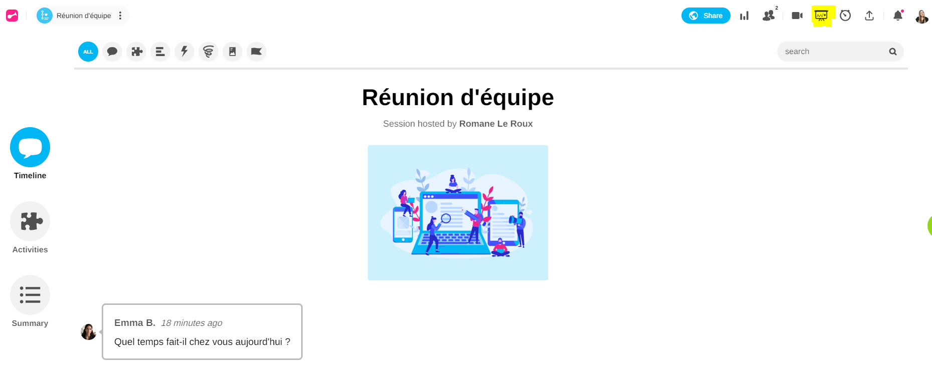 Pour optimiser l'engagement de vos participants, découvrez comment intégrer des Questions Live à vos Sessions.