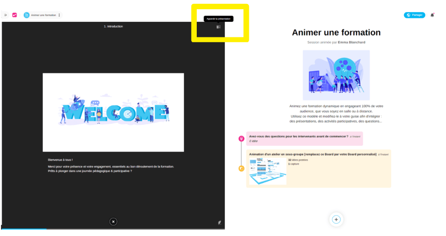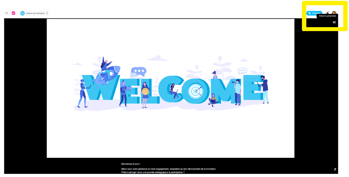 Lorsque vous animez une session, la présentation synchronisée en plein écran offre une immersion totale à vos participants. Découvrez comment passer en mode plein écran pour optimiser la visibilité de votre contenu et capter l'attention de votre audience.
