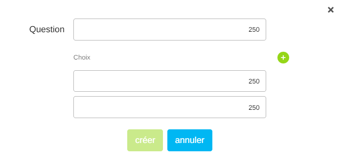 La fenêtre contextuelle de création d'une question en direct s'affiche :