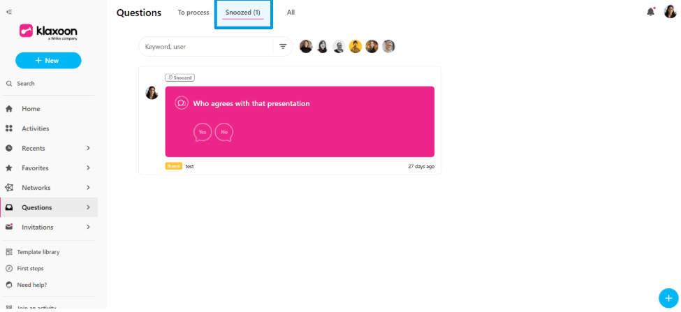 Accédez à vos Questions, puis cliquez sur "En attente" (ou "Snoozed").