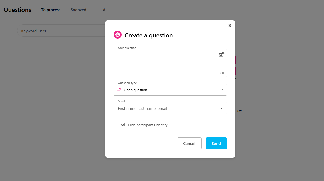 Lisez l'article sur l'Ajout d'une question en direct pour savoir comment ajouter une question en direct lors d'une réunion.