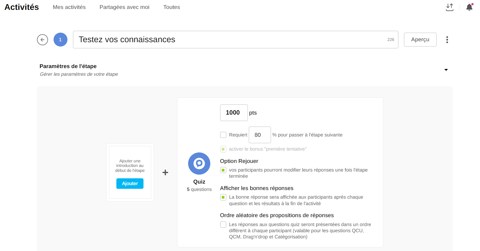 Allez dans les paramètres, modifiez le nombre de points par question et enregistrez.