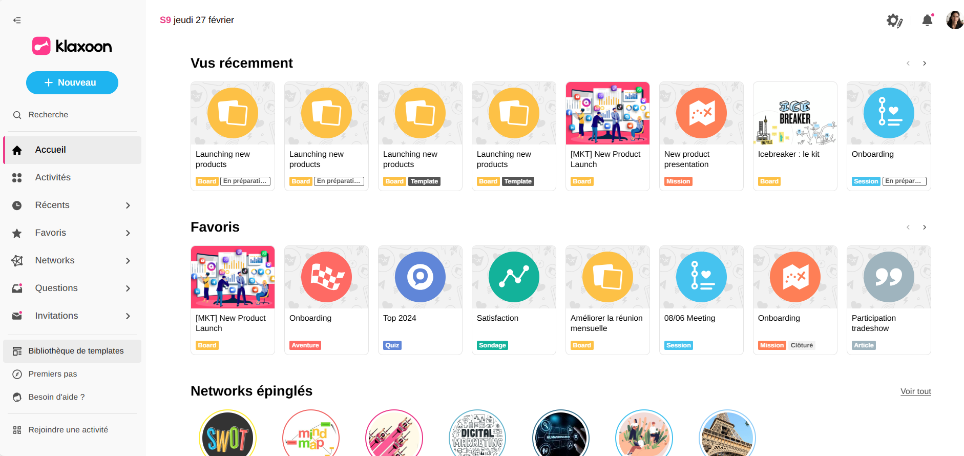 Depuis votre compte Klaxoon, sélectionnez "Bibliothèque de templates" dans le menu latéral situé à gauche.